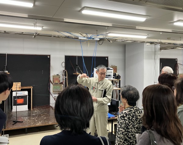 様々な機器の音の響きなどをチエックするため床が浮き、上下を含む全室、音を吸収する特殊な素材で作られた無響室や、風にどれだけ耐えられるかを検査する耐風速性試験設備など大型の設備もあり、大変面白く、貴重なものを拝見しました。